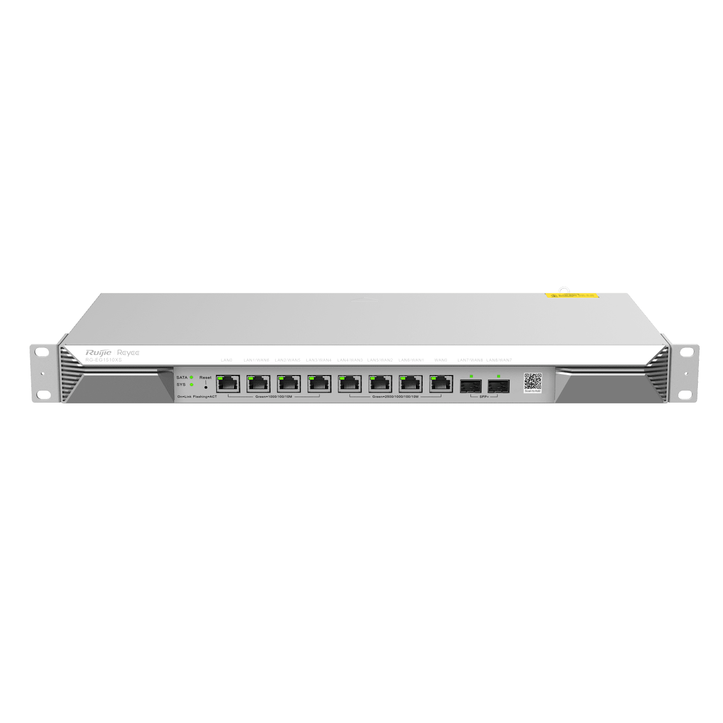 Max Clients: Up to 1500; Ethernet Ports: Multi-Gigabit (including 10G SFP+); WAN Ports: Multiple (Load Balancing/Failover); Management: Cloud Managed (Ruijie Cloud); Features: VPN, QoS, Flow Control, Network Control