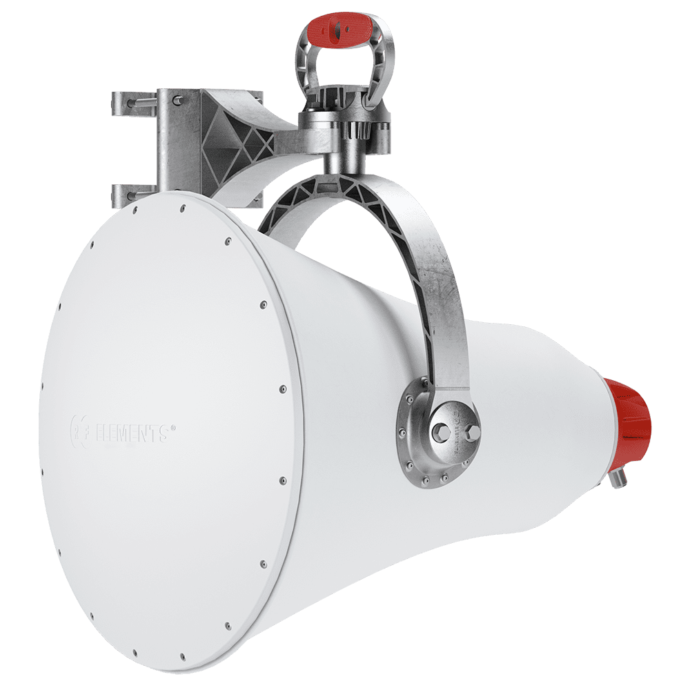 The UltraHorn™ CC 5-24 is an ultimate noise-rejecting directional horn antenna equipped with N-female connectors, offering high gain (24 dBi) and exceptional directivity across the 5180-6775 MHz ultra-wideband spectrum. Its unique symmetrical beam design has no side lobes, ensuring that all radiated energy is concentrated into the main beam to minimize interference and achieve incredible performance in noisy environments. This antenna is ideally suited for long-distance links or as a narrow sector antenna for precise network planning. It is provided as a comprehensive solution, requiring no additional radomes or shrouds, which reduces overall cost and tower burden. The innovative mounting system facilitates easy installation and quick, precise alignment.